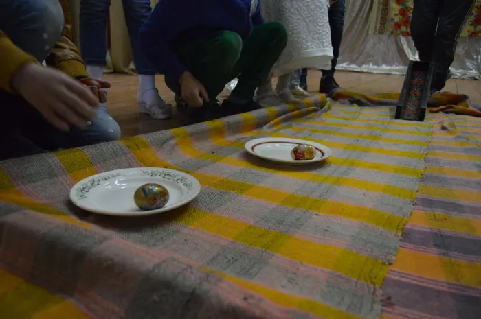 Также, все собравшиеся смогли поиграть в традиционные пасхальные игры- катание яиц с горки, чьё яйцо будет крутиться дольше. Каждый в итоге получил сладкий подарок.